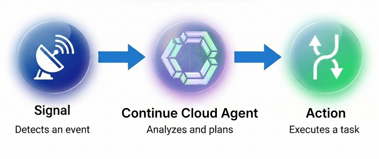 By connecting your existing toolchain (GitHub, Sentry, Snyk, Supabase, PostHog, Slack, Netlify, etc.) to Continue Mission Control, you can deploy AI Agents that turn noisy signals into finished work.