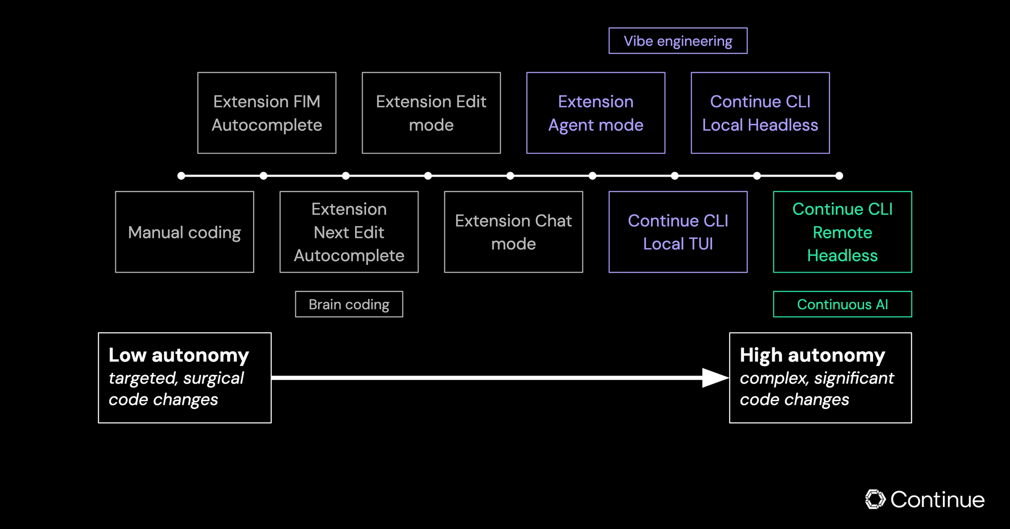 Sometimes that's vibe coding—watching AI generate something quickly. Sometimes it's vibe engineering—carefully reviewing every line while AI accelerates the work. And increasingly, it's Continuous AI—orchestrating multiple remote agents while staying accountable for what ships.